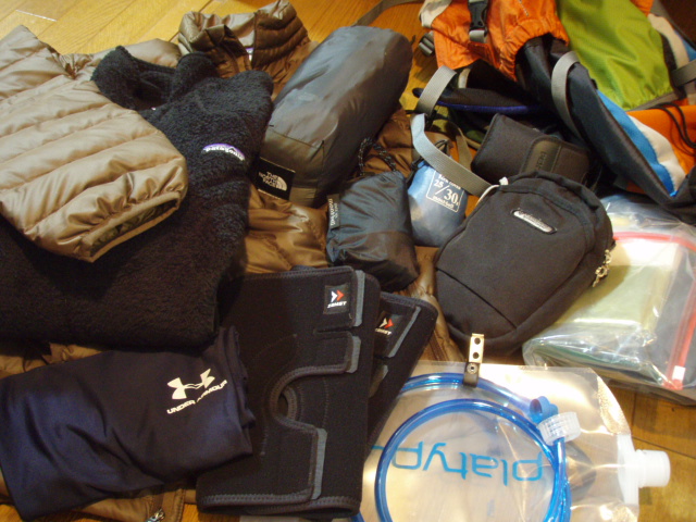 水はハイドレーションにて2.5リットルをパッキングします。総重量10キログラム。