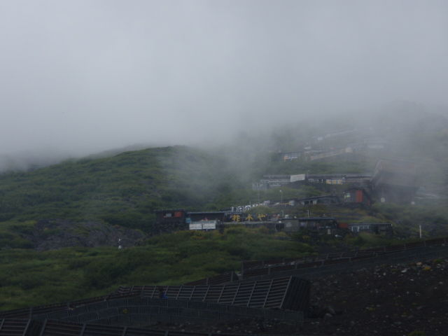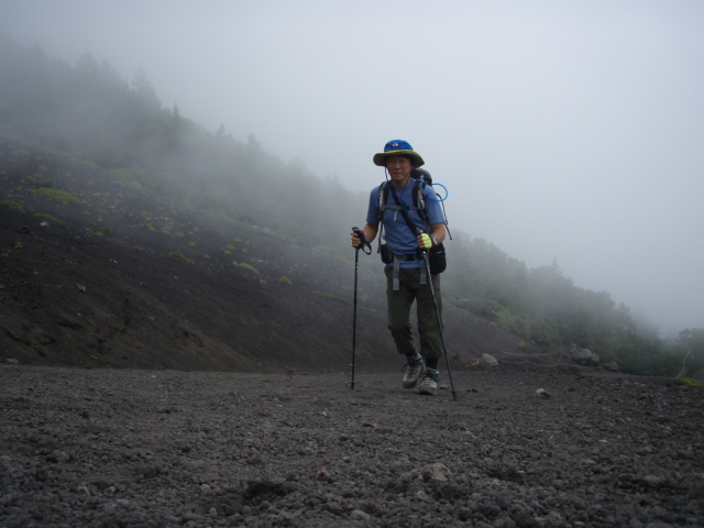 ↓雲の中です。富士山はご覧の通り火山性の砂礫(されき)の塊です。