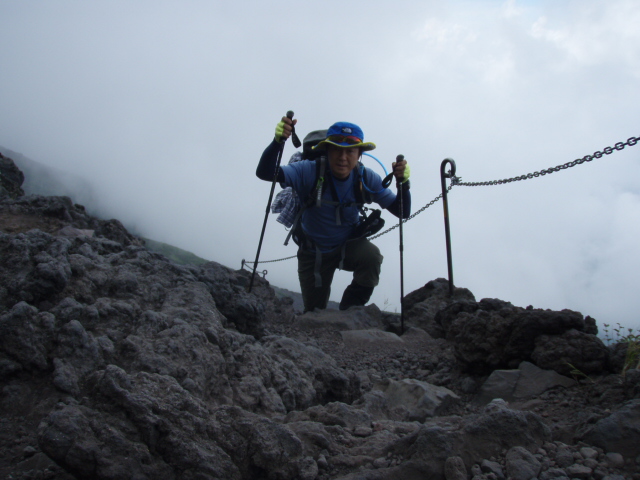 ↓7合目を過ぎるといきなり険しくなります。