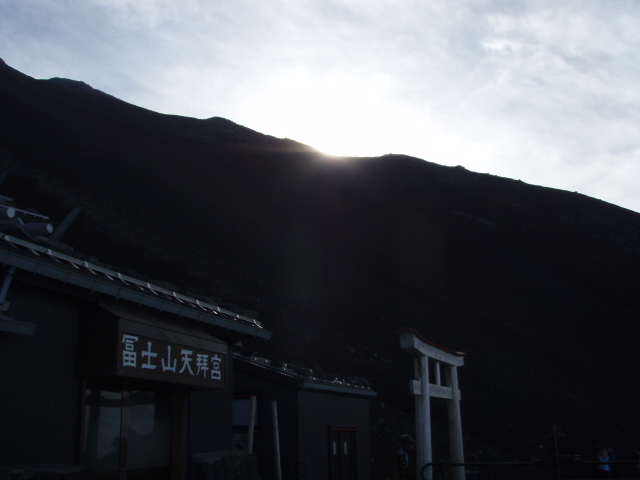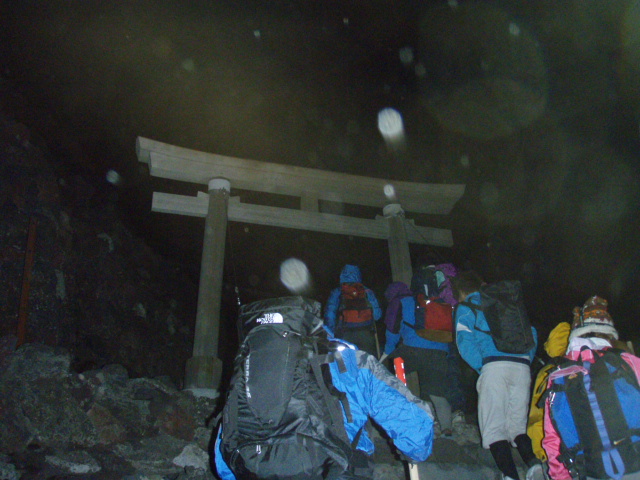 ↓鳥居をくぐって、ここは9合目標高3600m。酸素薄いです。