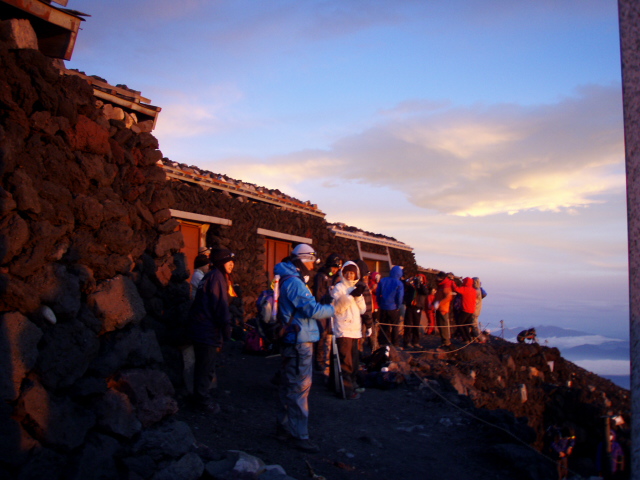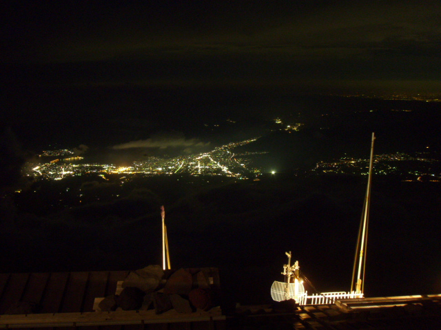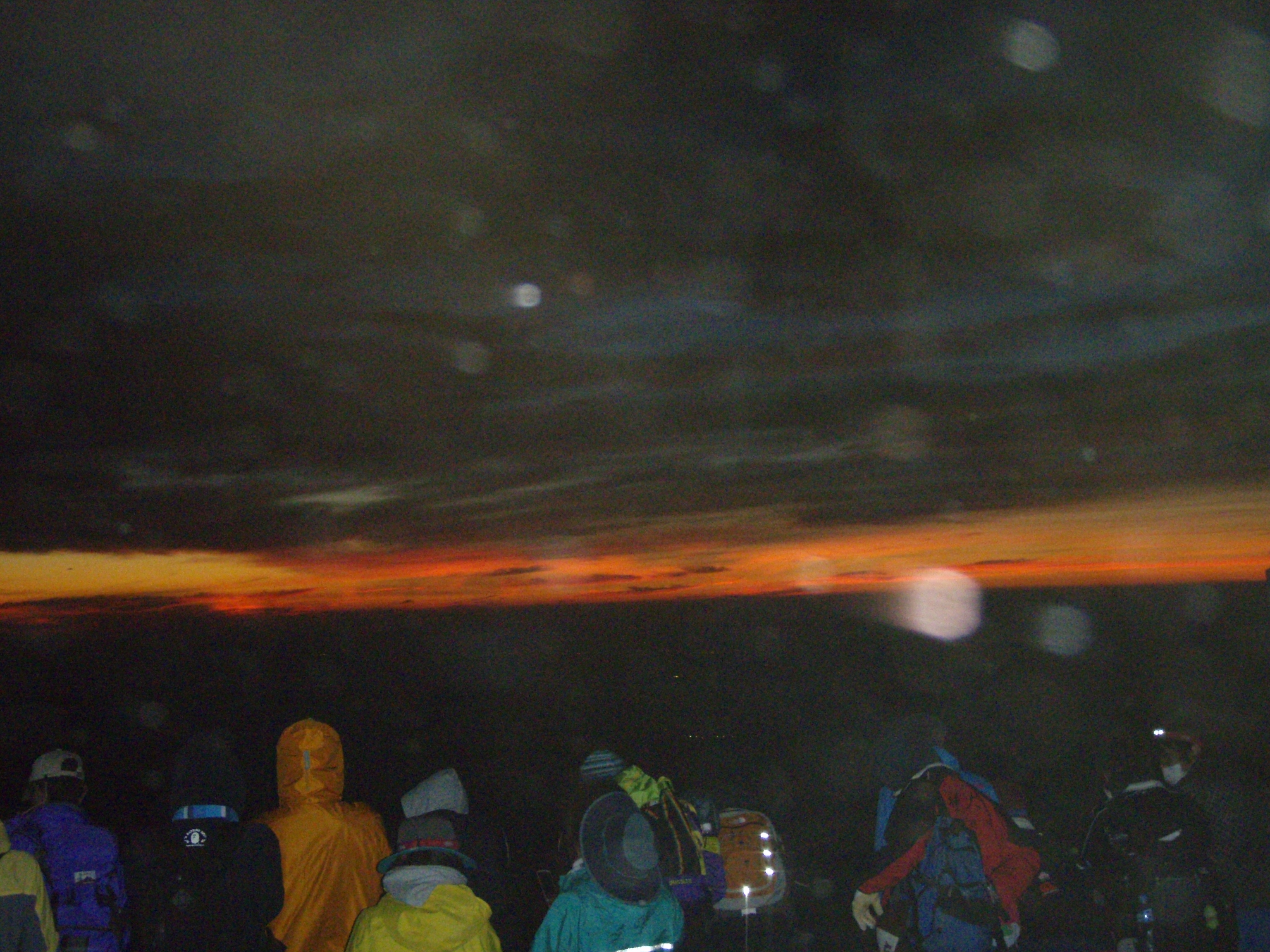 こちらからも下が見えるように、ハイシーズンのご来光集団が灯すヘッドライトの帯も下界から確認できます。