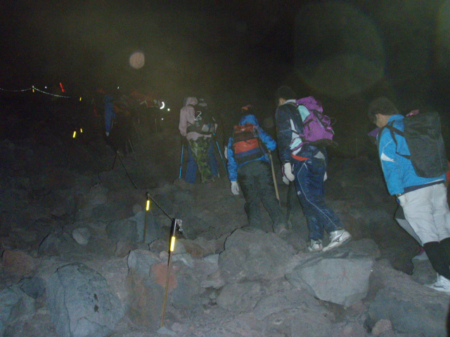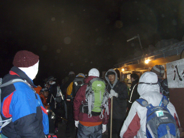 ↓午前3時、ご来光集団は山頂へ向けて出発します。
