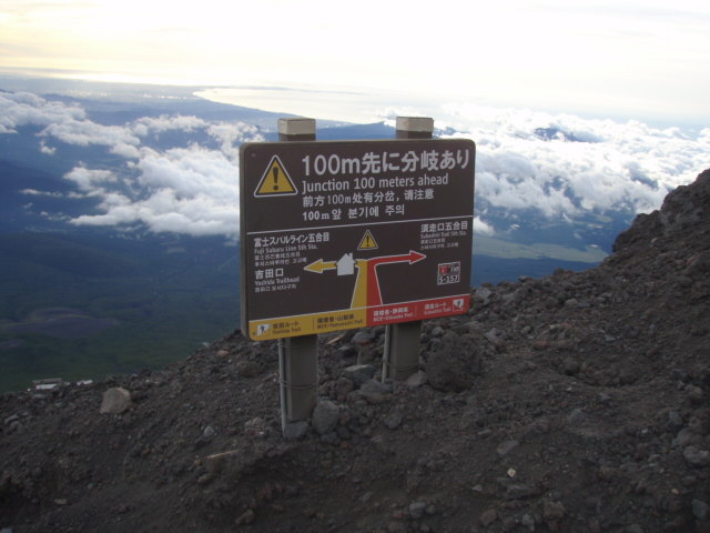 ここで間違うと、とんでもないことになります。タクシー呼んで須走り口から吉田口に戻ると\20000は超えると聞きました(汗)。