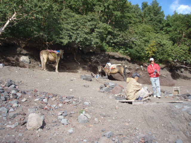 ↓5合目から7合目までは馬に乗って登ることもできます。